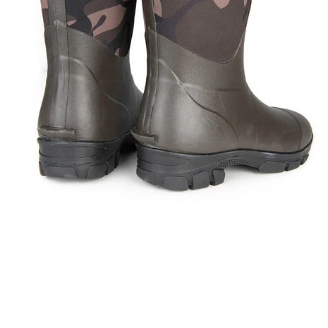 De Fox Camo Neoprene Boots zijn erg degelijke laarzen die perfect te gebruiken zijn in natte en/of modderige omstandigheden. De groene kleur in combinatie met de Fox Camo print maakt dat het geheel netjes bij al je andere visspullen past. De buitenzool is gemaakt van een duurzaam rubber voor een verbeterde grip in alle omstandigheden. De binnenkant is gevoerd met een speciaal 3D mesh en een EVA binnenzool voor ultiem comfort. De buitenkant heeft een extra feature op de achterkant, de zogenaamde “Kicker”. Als je laarzen onder de modder zitten kan je een voet tegen de Kicker zetten zodat je hem gemakkelijk uit kan trekken zonder alles vies te maken. Al met al wederom een prachtig product uit de stal van Fox!